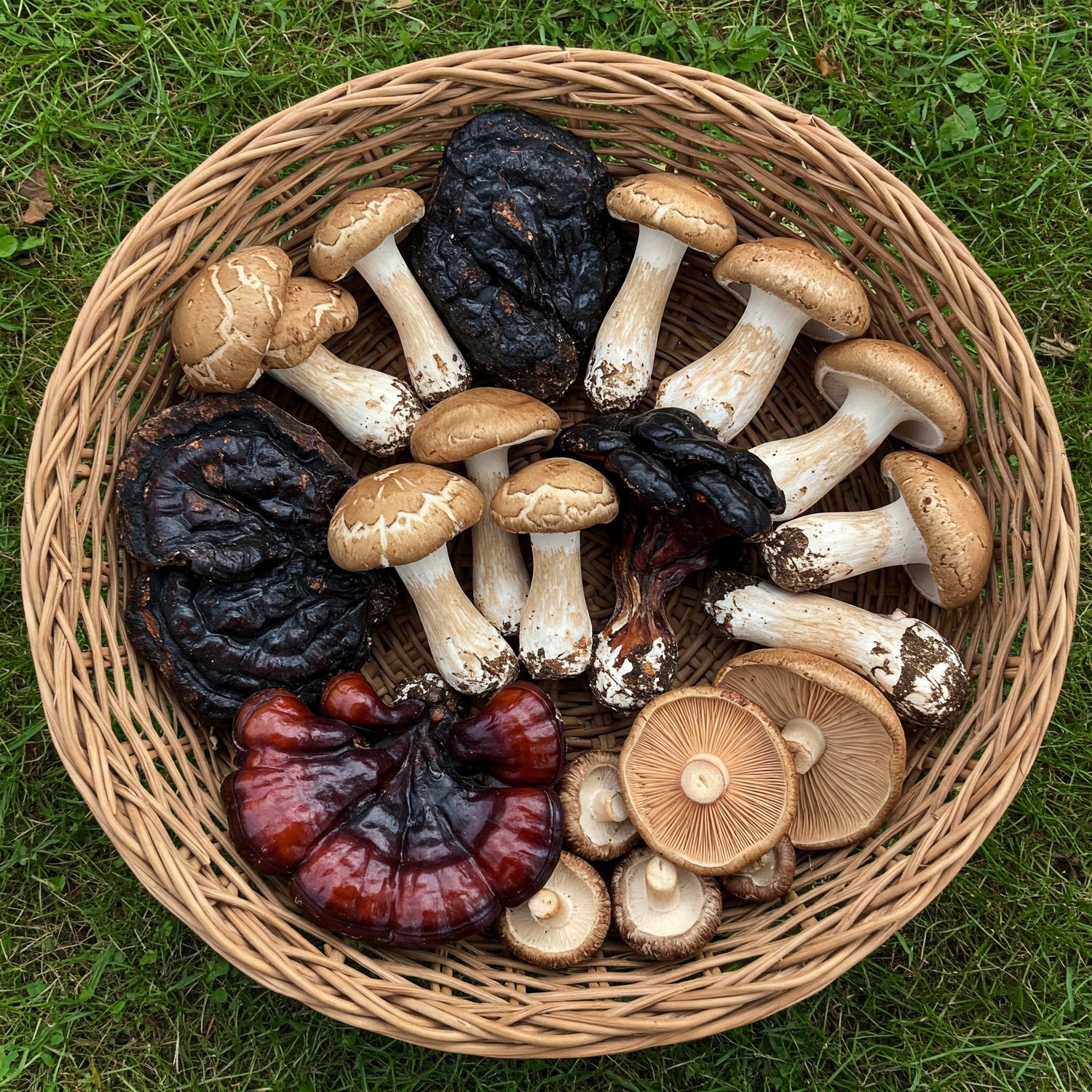 I grow these mushrooms myself (Turkey Tail, Reishi, Lion's Mane, Shiitake). We use a hot-water extraction to remove the fibrous chitin, isolating the Beta-Glucans—the active compound that modulates the immune system.